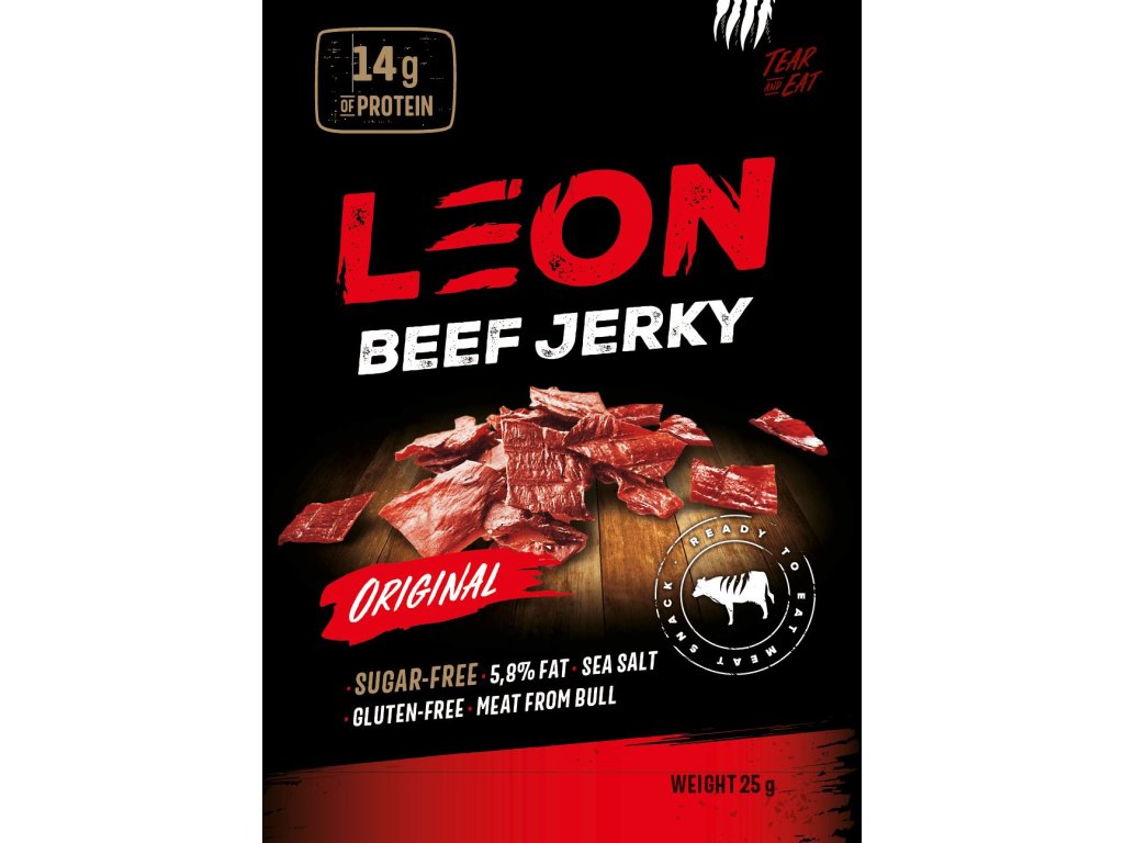 Pokud hledáte rychlou a zdravou svačinu mezi vašimi tréninky, zvolte Leon Jerky. Malé balení jerky obsahuje dostatek bílkovin k doplnění vaší síly a udržení energie po zbytek dne!